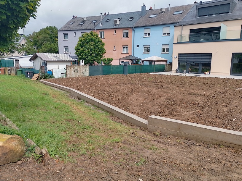 mise à niveau du terrain + gazon + cloture en anthrazit