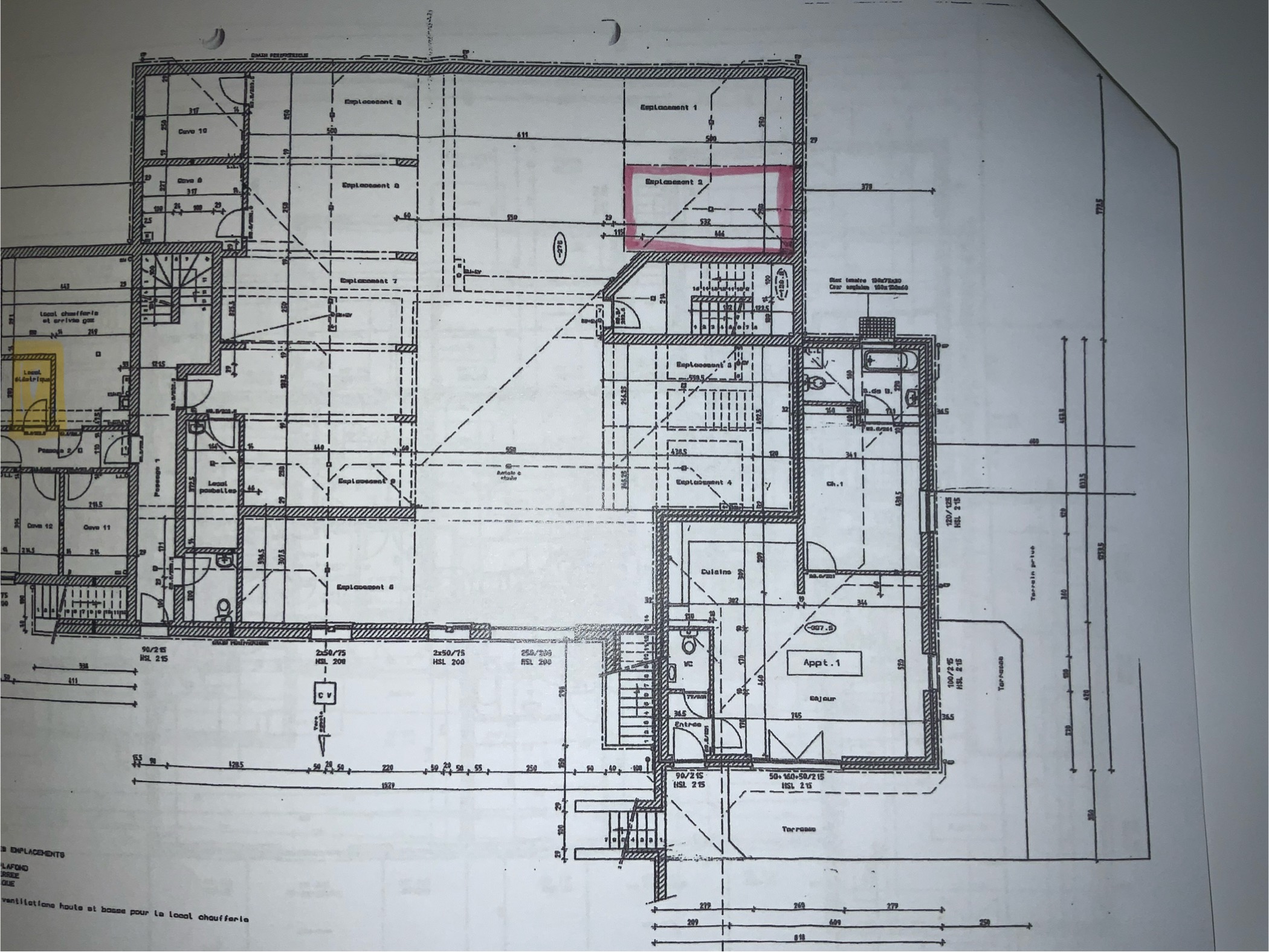 Une gène technique (acec accèes) est installé dejà entre le tableau electrique (jaune sur le plan) et l’emplacement (rouge sur le plan). La lingeur total du cable a tirer est de 25m plus ou moins.