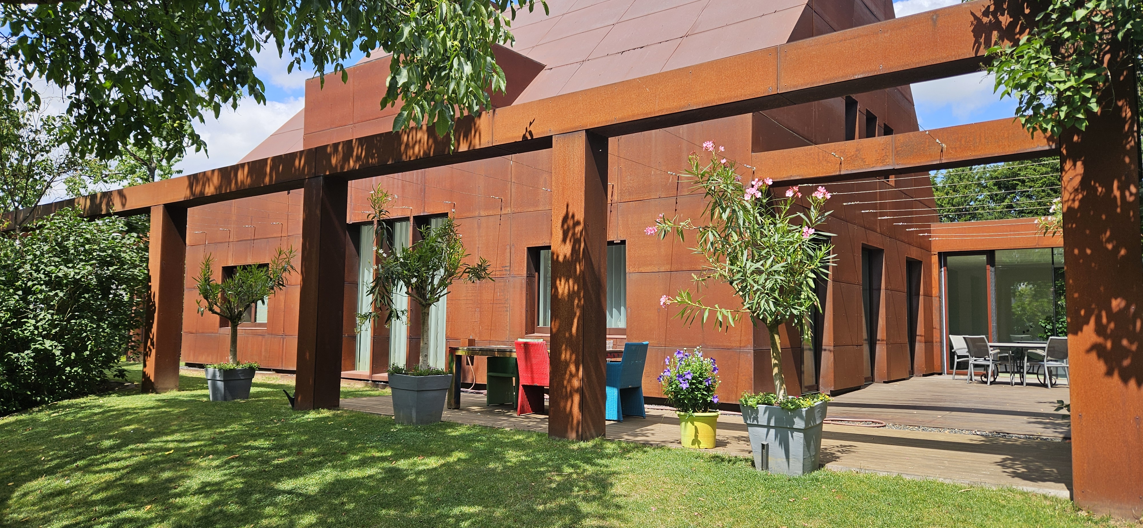 Le système doit s’intégrer harmonieusement à l’architecture de la maison, notamment à la façade en acier Corten (couleur rouille).