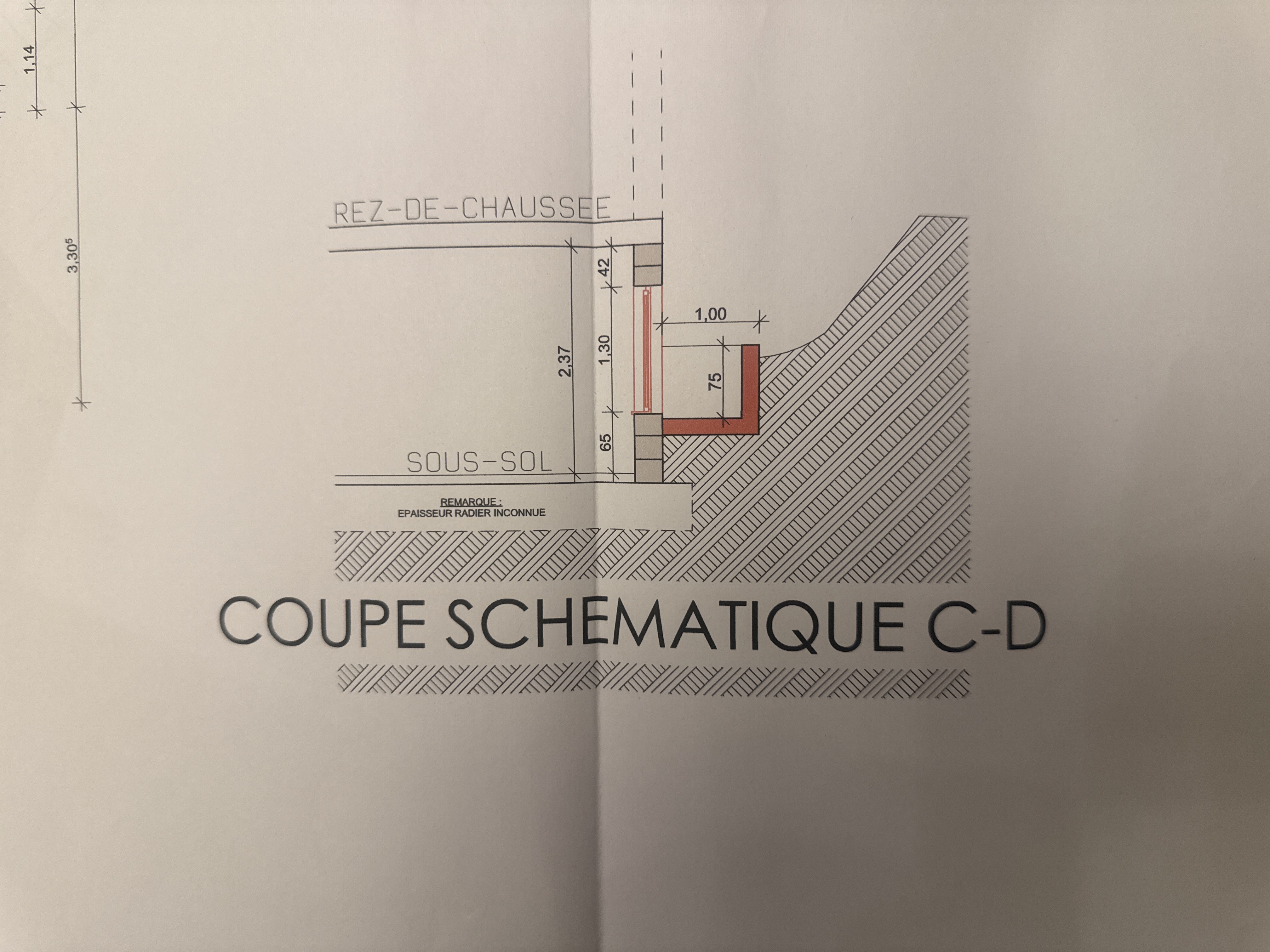 agrandir 3 fenêtres au sous-sol et faire une cour anglaise afin d’atteindre la proportion fenêtre par rapport à la surface de la pièce . Il faut déblayer autour des fenêtres. Agrandir les ouvertures afin de pouvoir poser des fenêtres plus grandes. Il existe des plans d’architecte et l’autorisation de construction a été affiché au publique. D’autres projets sont à réaliser peut-être en même temps pour un garage au sous-sol.