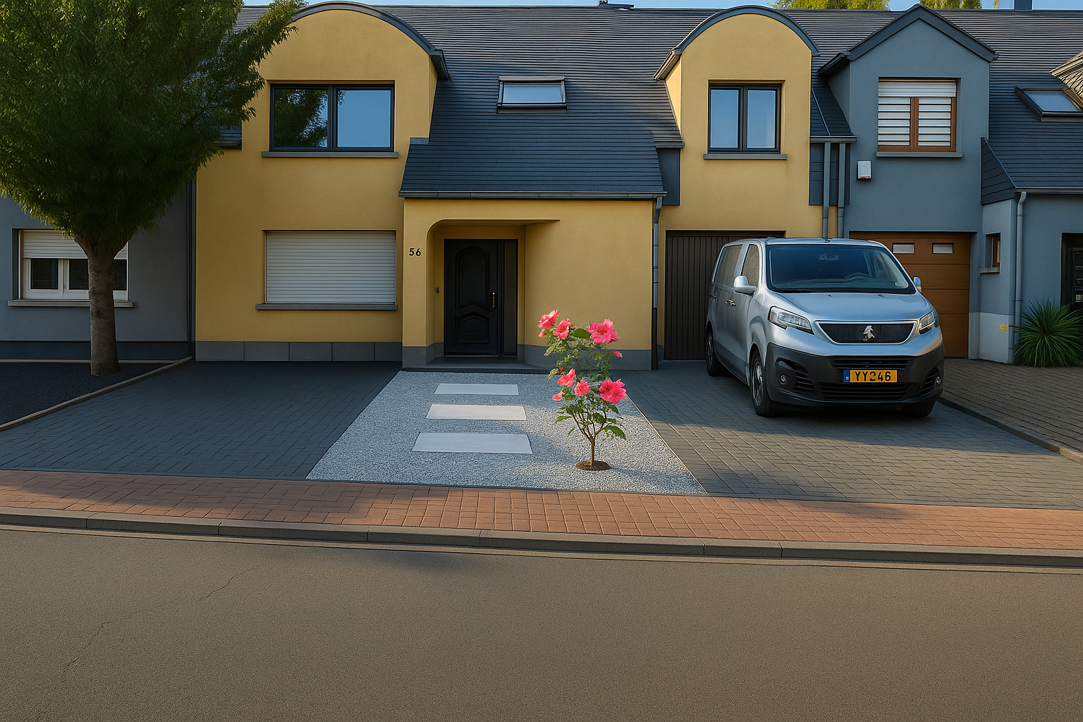 Amenagement avant jardin devant la porte avec l‘accord de la commune