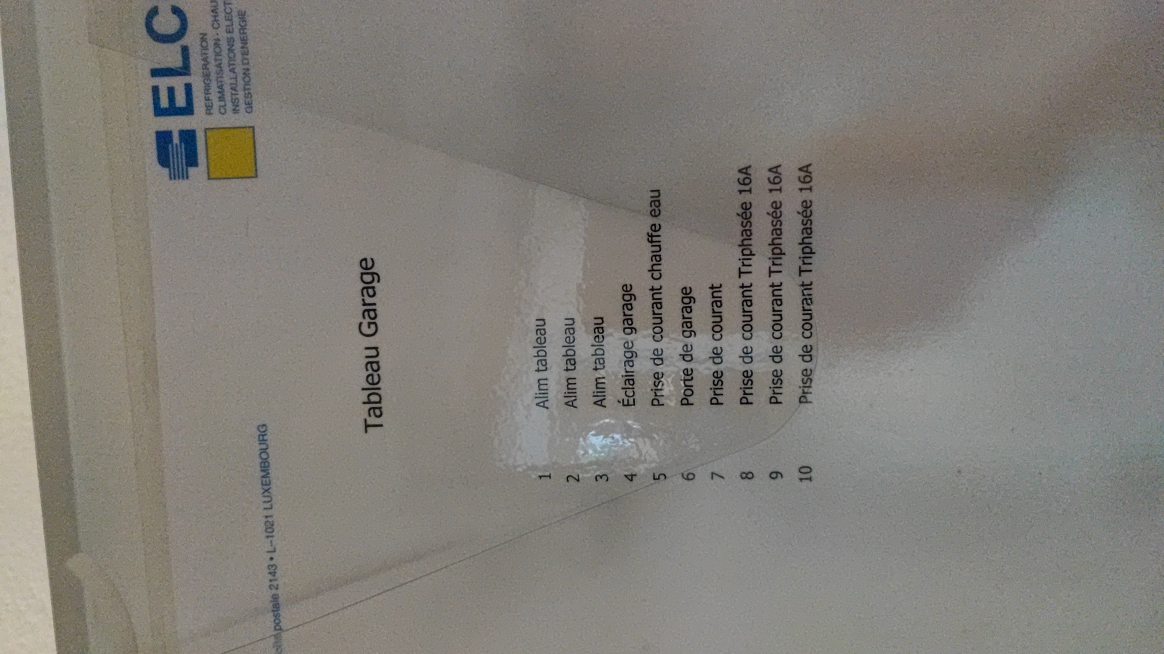 2. Chose: c est possible de faire une prise 400v dans mon garage fermé? En annexe une photo du tableau électrique.