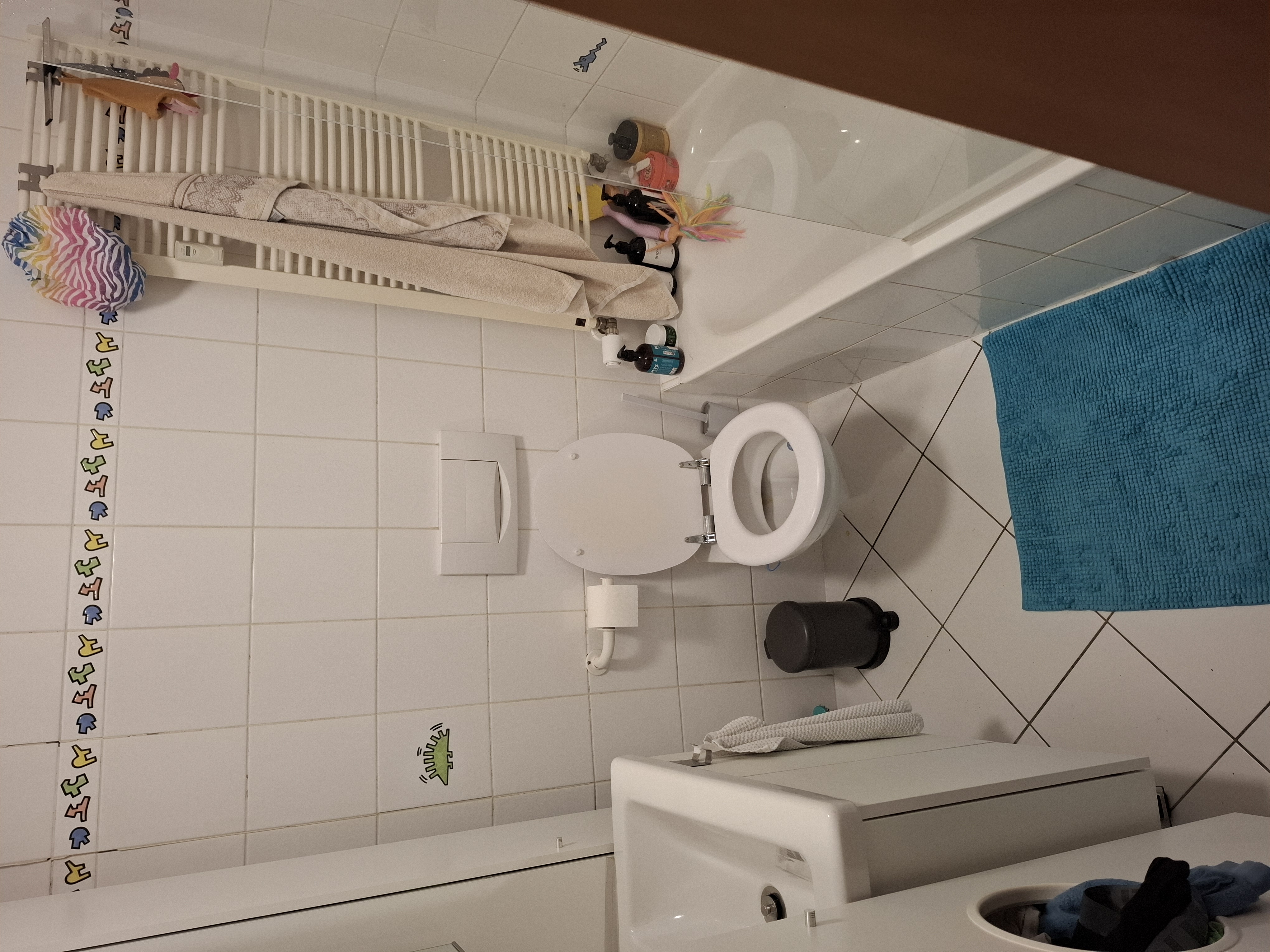 Il s'agit de remplacer le WC suspendu, les carrelages sols et murs et une douche italienne par une baignoire. La salle de bain à 175cm para 200cm et 250 de hauteur. Carrelage jusqu'au plafonds comme actuellement.