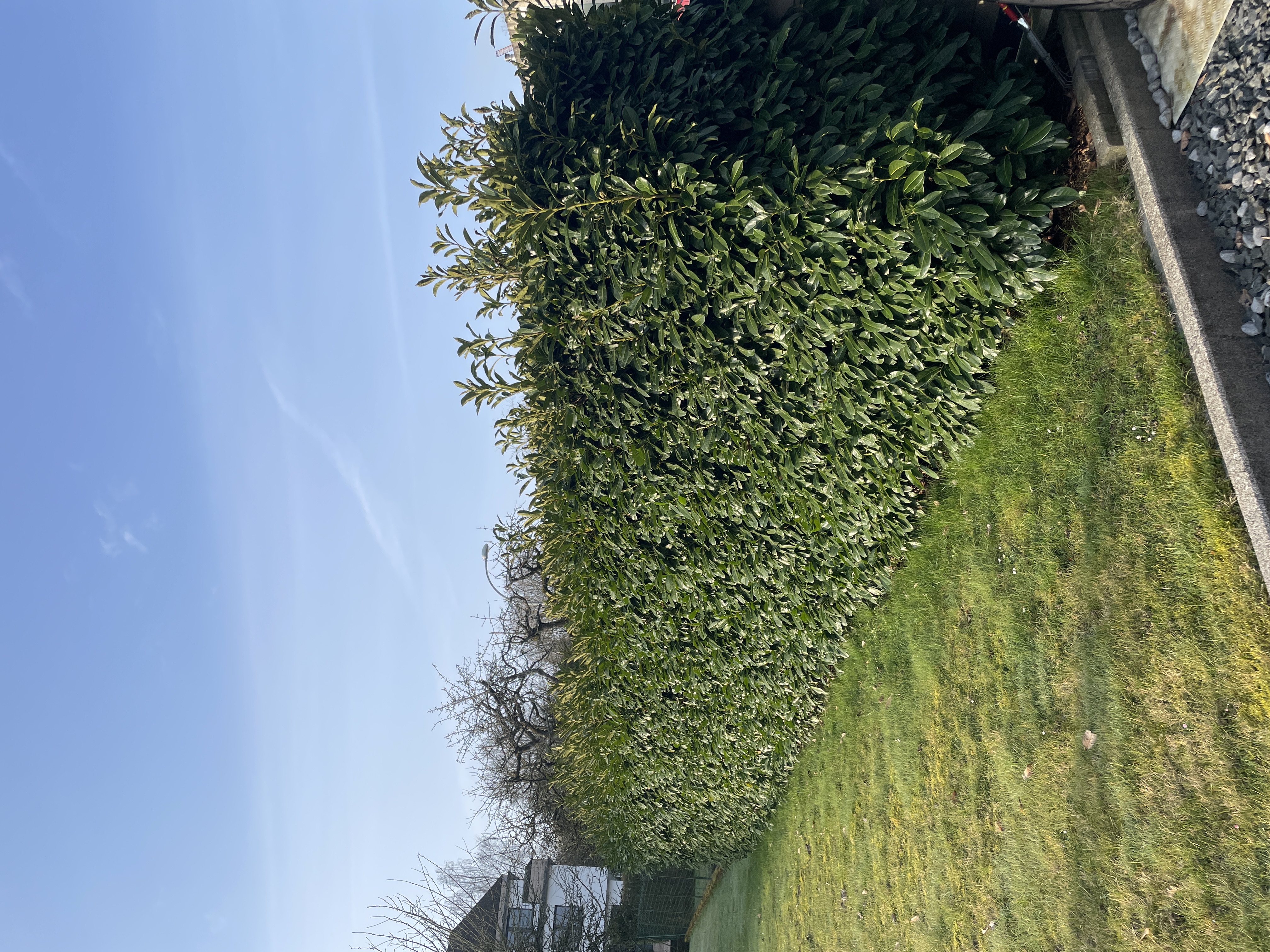 Une grande haie de laurier à couper de moitié