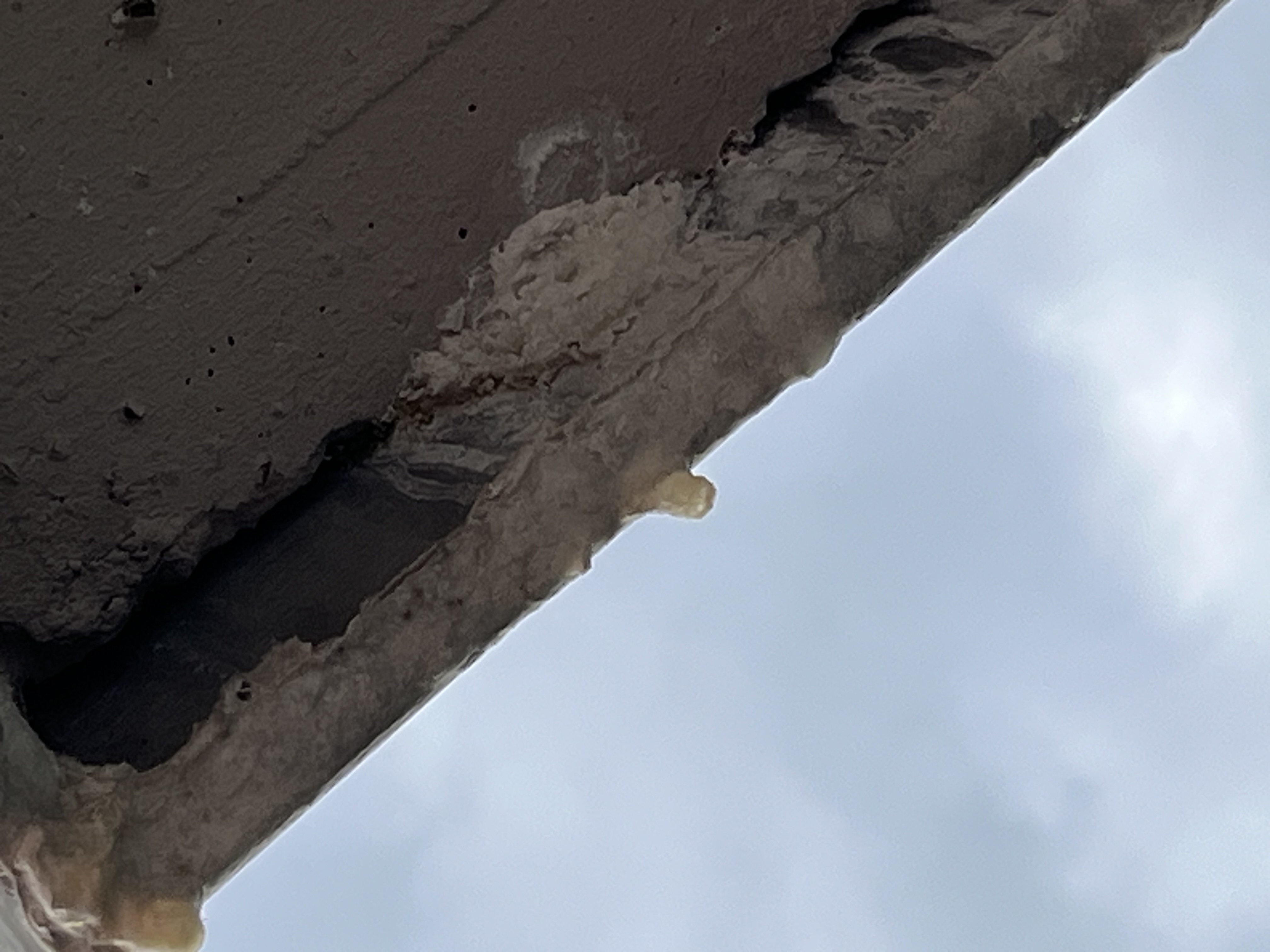 Balcon de 5 sur 2 m , problème d’étanchéité. Carrelage laisse infiltrer l’eau, traces de calcaire sortant en forme de stalactites.
