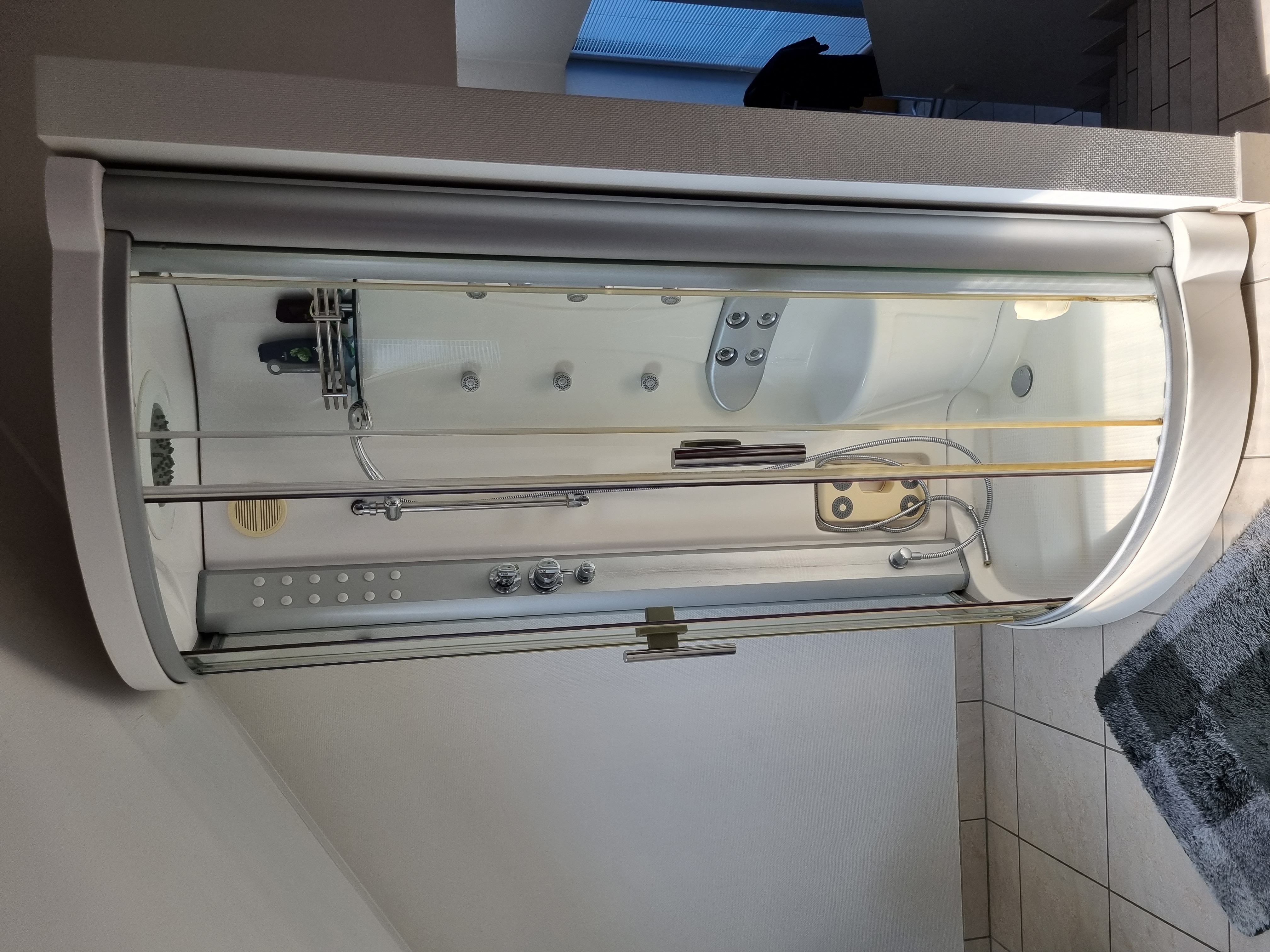 Remplacement d'une cabine de douche. Mesures 90x90x215 cm. Démontage de l'ancienne cabine de douche et montage de la nouvelle cabine de douche.
