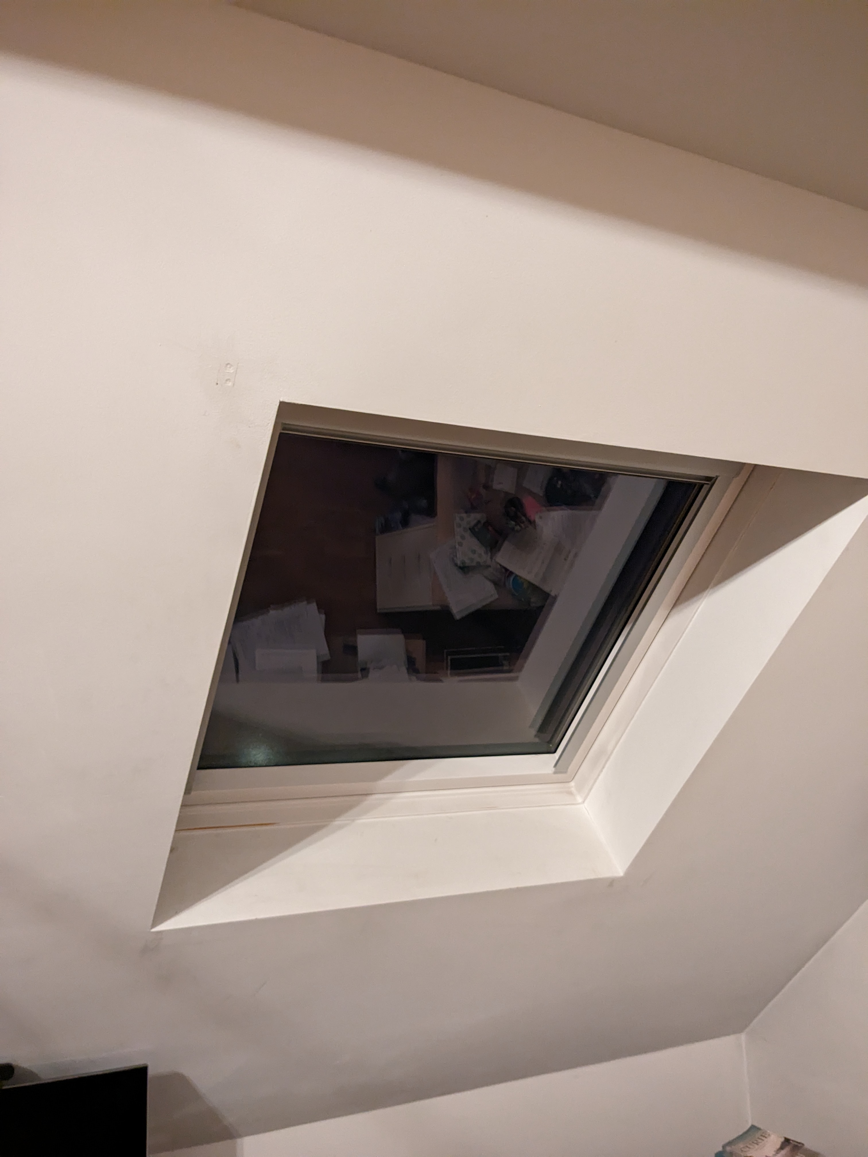 On veut installer deux Velux dans notre toit. Envirant 100x100 avec motorisation, détecteur de pluies et rollot externe. Comme on peut voire sur la photo on a déjà le même type de velux dans le toit.