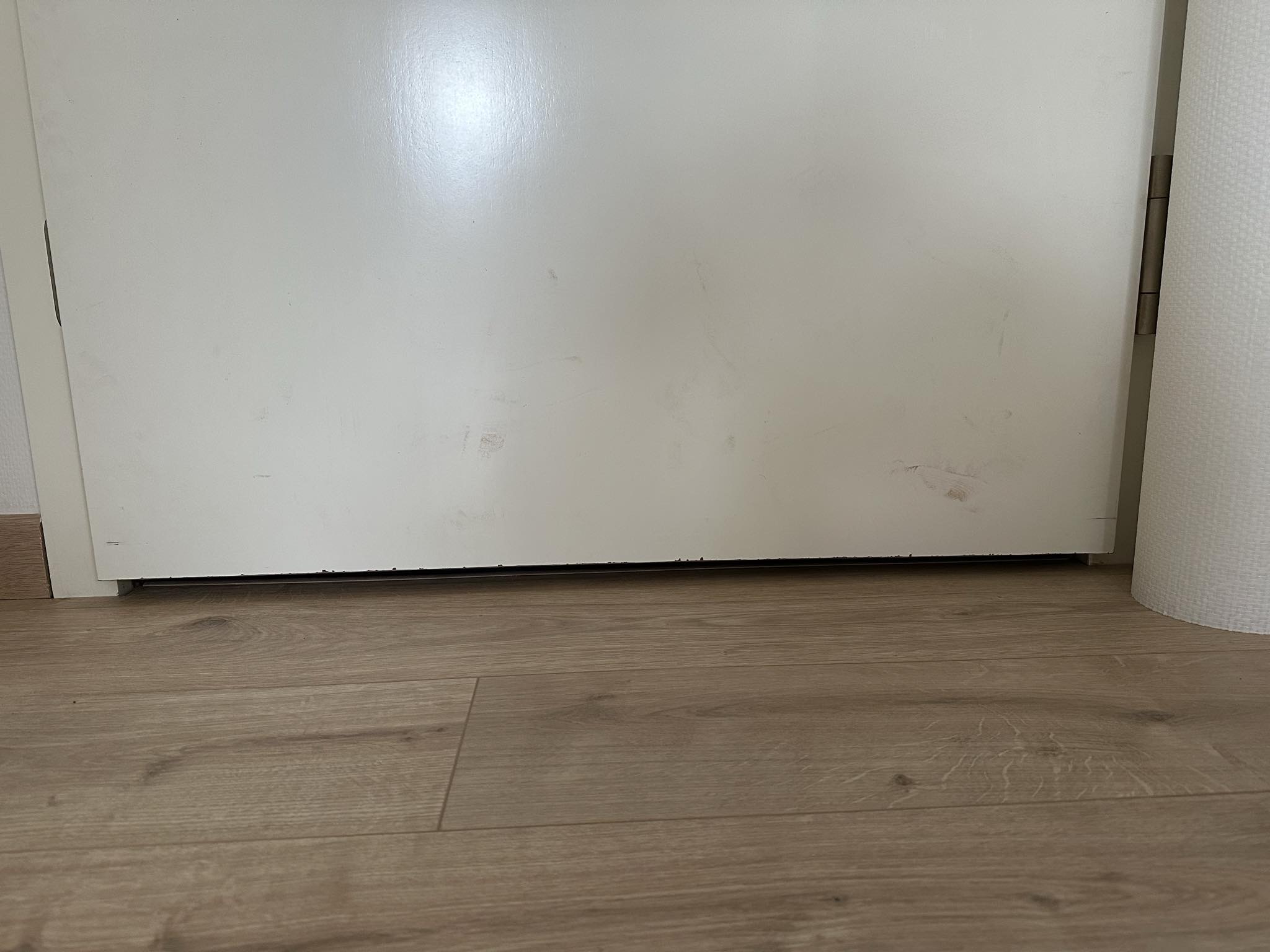The front door of my appartment (in a buidling) was over strimmed and the gap between door and floor is about 2,5cm. Now, noise and air can get inside. I would like to fix this