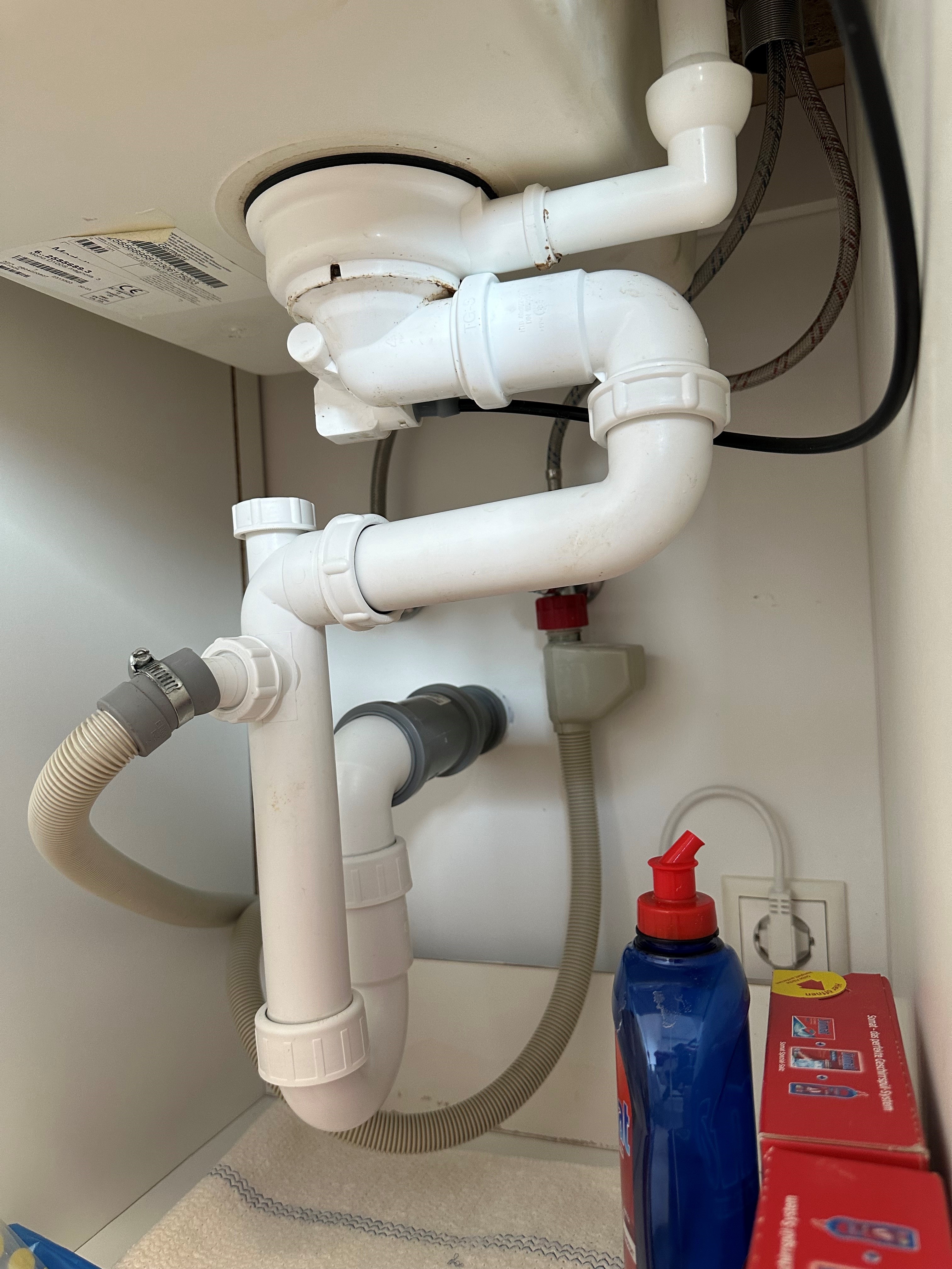 Changement de toute l'installation des tuyauteries en-dessous d'un évier (Voir photo)