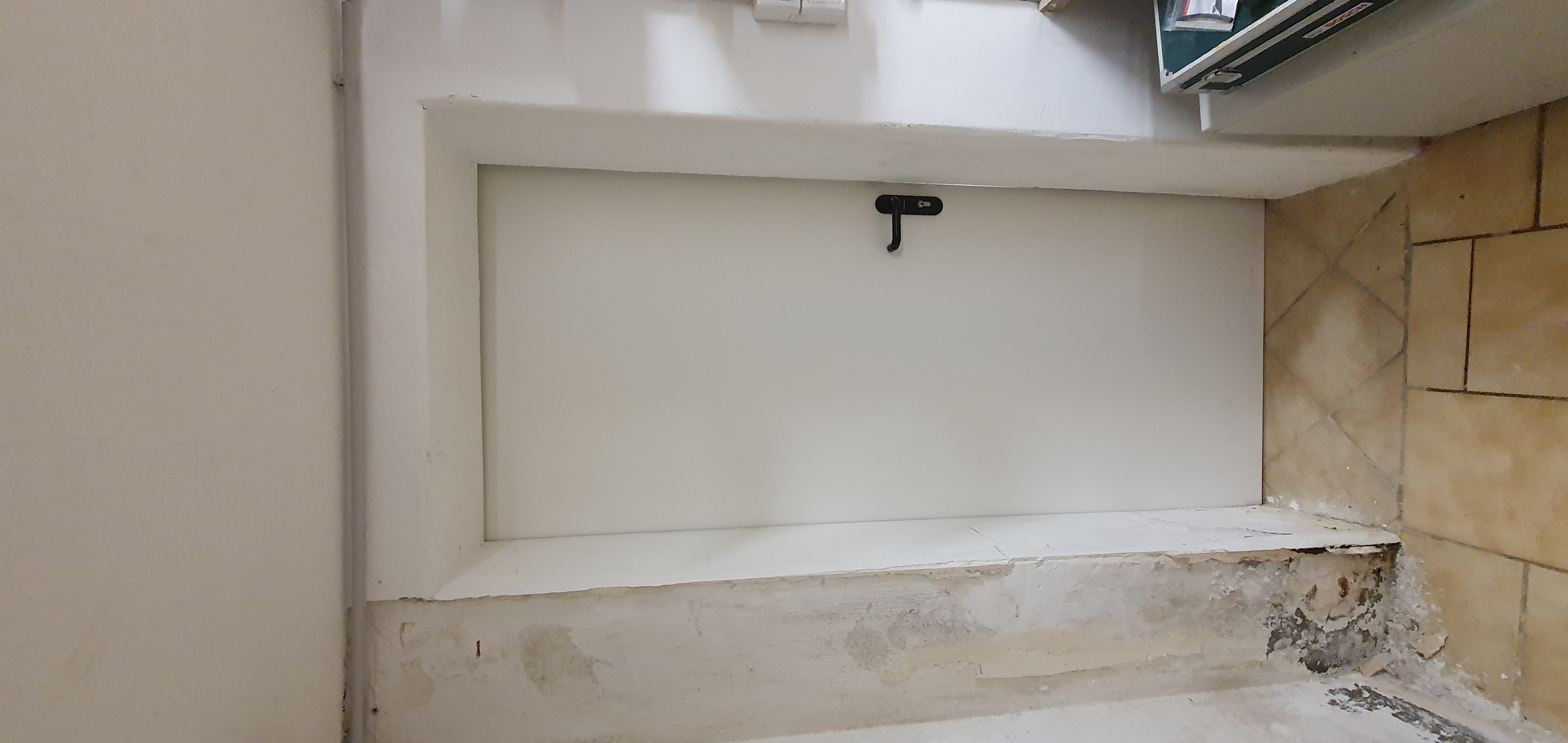 porte intérieure située dans la cave, donnant sur abris de jardin (extérieur), à remplacer par une porte de balcon en PVC, isolée, triple vitrage.