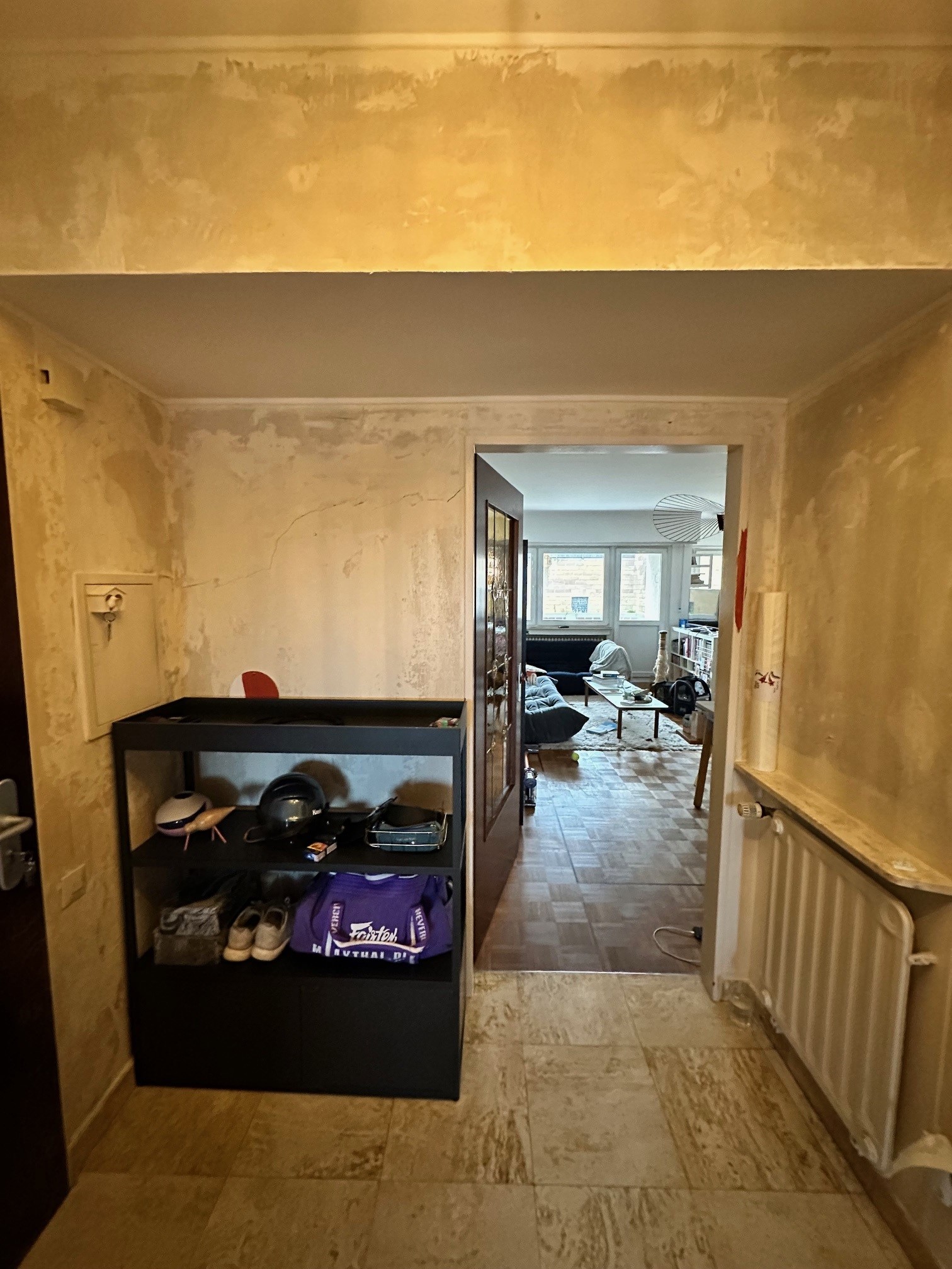 - Préparation des murs : Les murs sont déjà détapissés, il faudra les préparer avant de les tapisser.