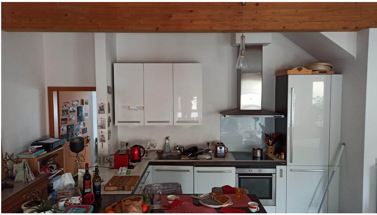 Réalisation d'un faux plafond dans une cuisine (pose + peinture) derrière la poutre visible sur la photo + pose de 4 spots souhaitée