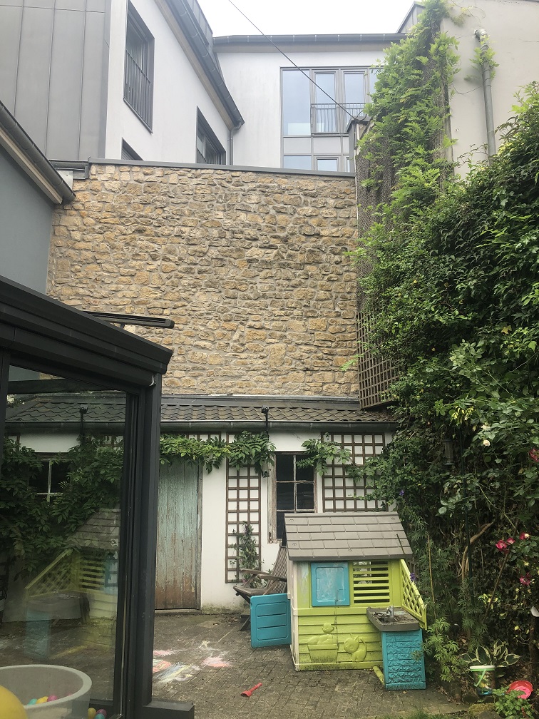 Je souhaiterais mettre en place une nouvelle installation permettant à la fois de protéger le mur et de maîtriser la végétation. Idéalement, il s’agirait également de trouver une solution pour éviter que les plantes ne dépassent sur le toit plat situé au-dessus. Celui-ci n’est malheureusement pas accessible, même si le voisin a donné son accord.