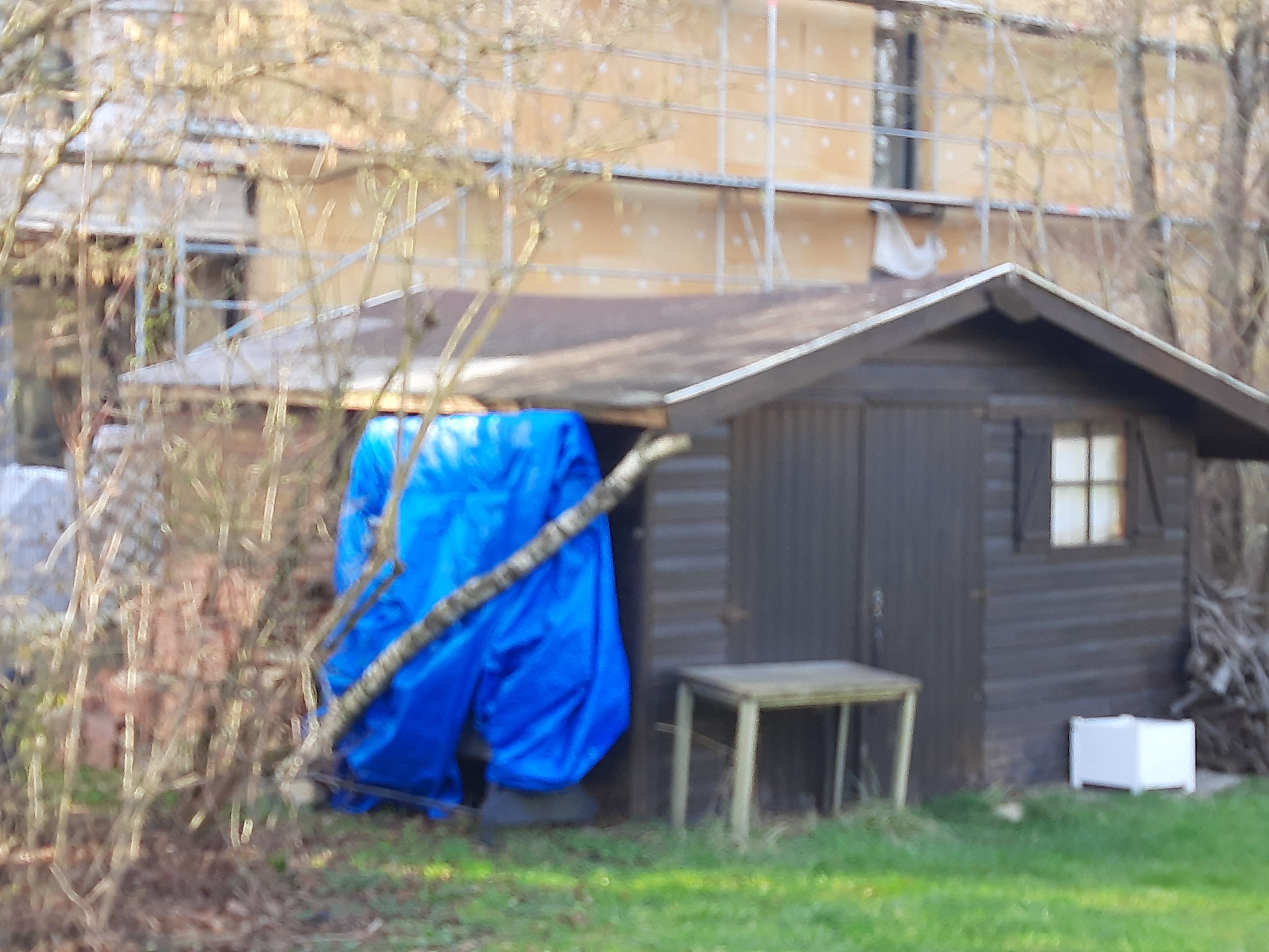 1. Entretien/rénovation du toit d'un abri de jardin (pénétration d'eau) : voir photos