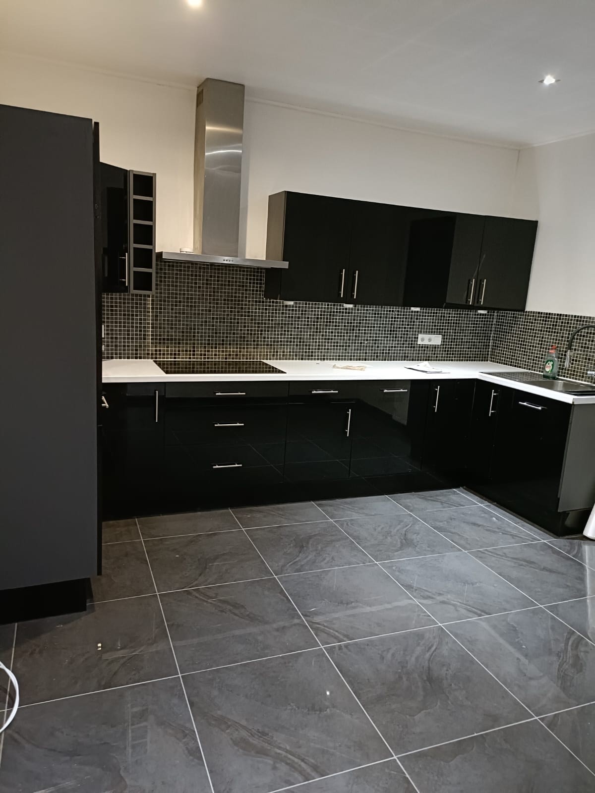 Mur de la cuisine endommagée et faience également.