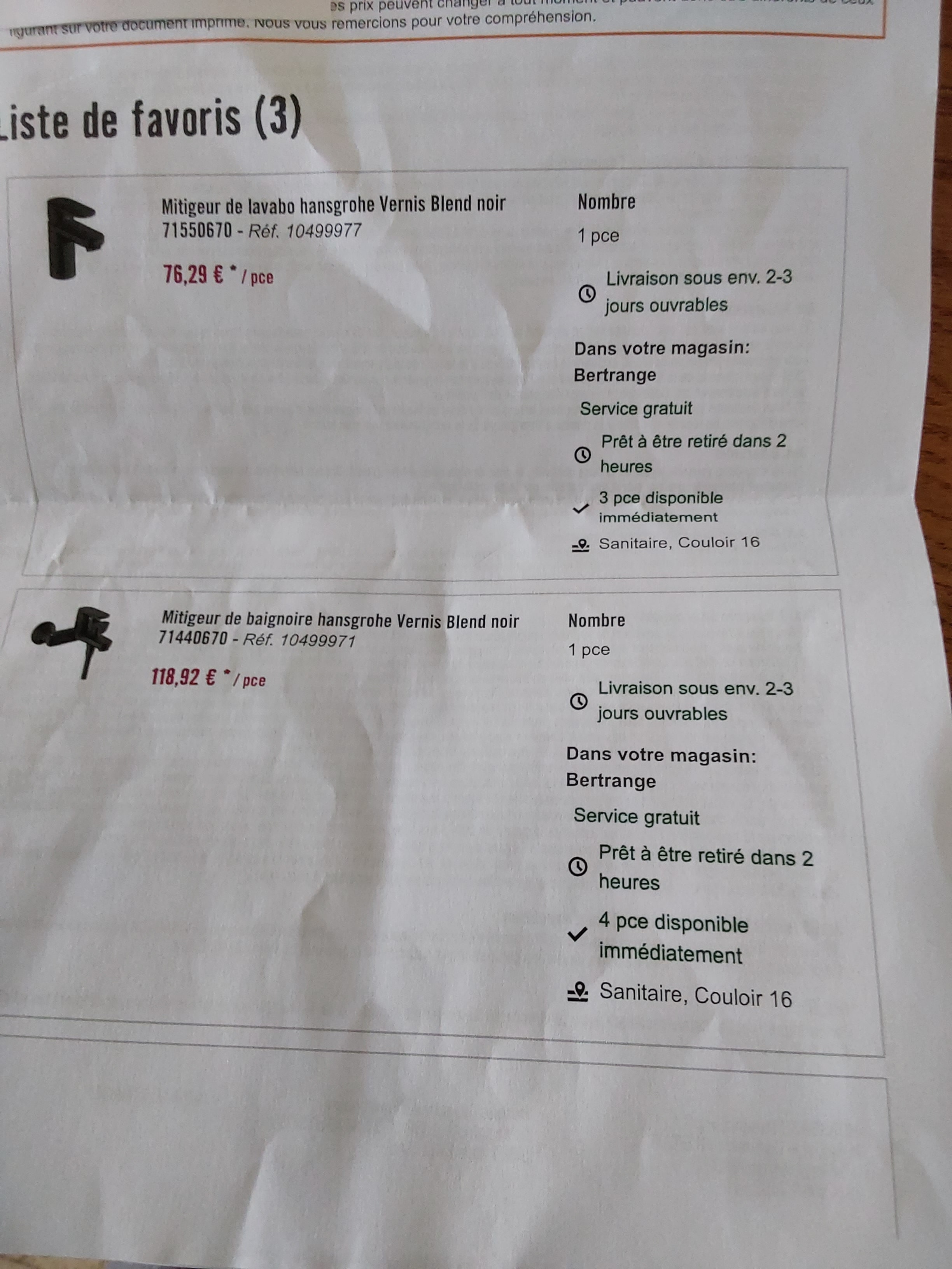Remplacement de la robinetterie de la salle de bain (deux robinets du lavabo, robinet de la baignoire et colonne douche) et de la cuisine (un robinet) par des nouveaux robinets de chez Hornbach.