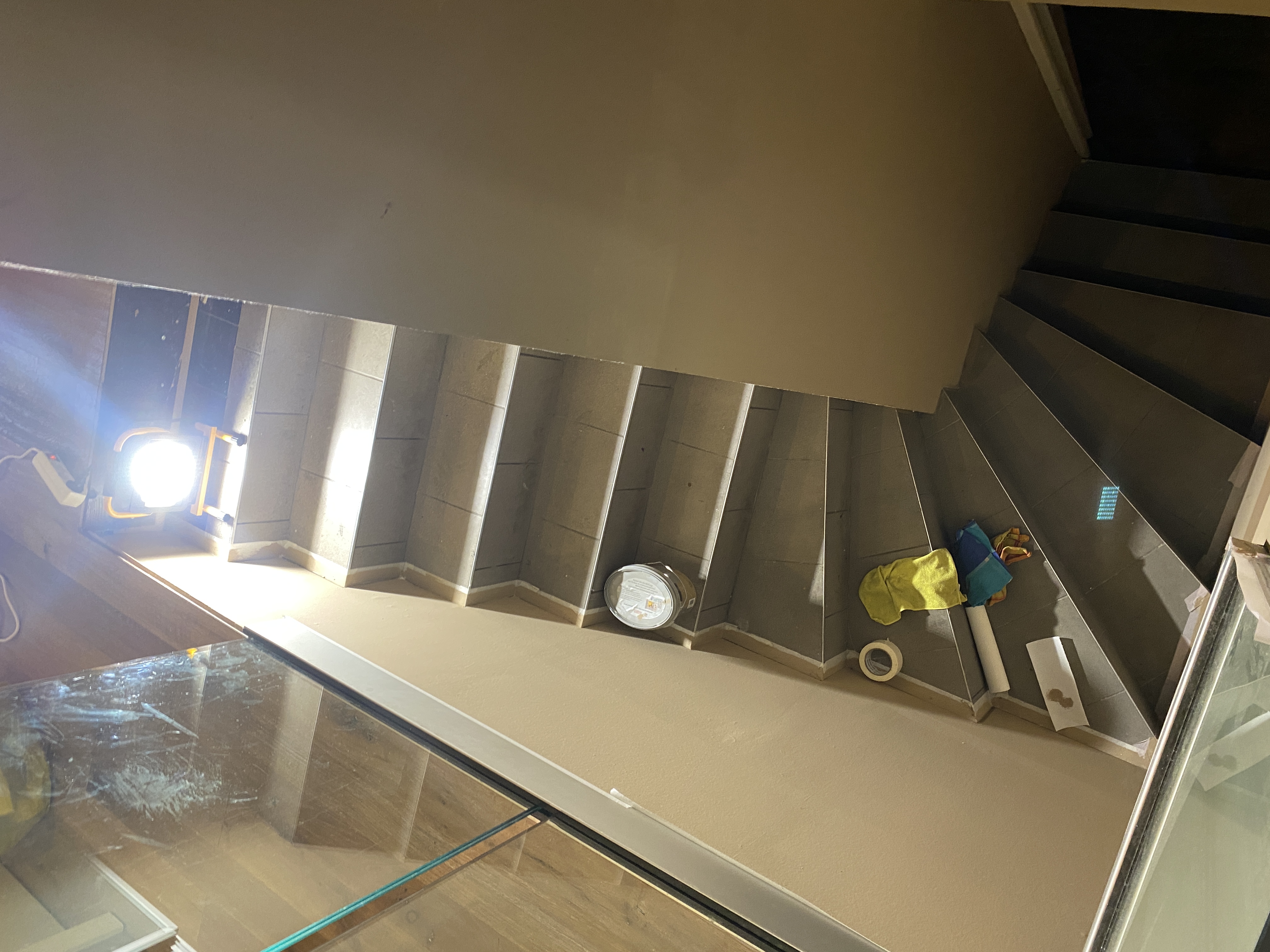 Escalier existant en béton. Revêtement actuel = carrelage.