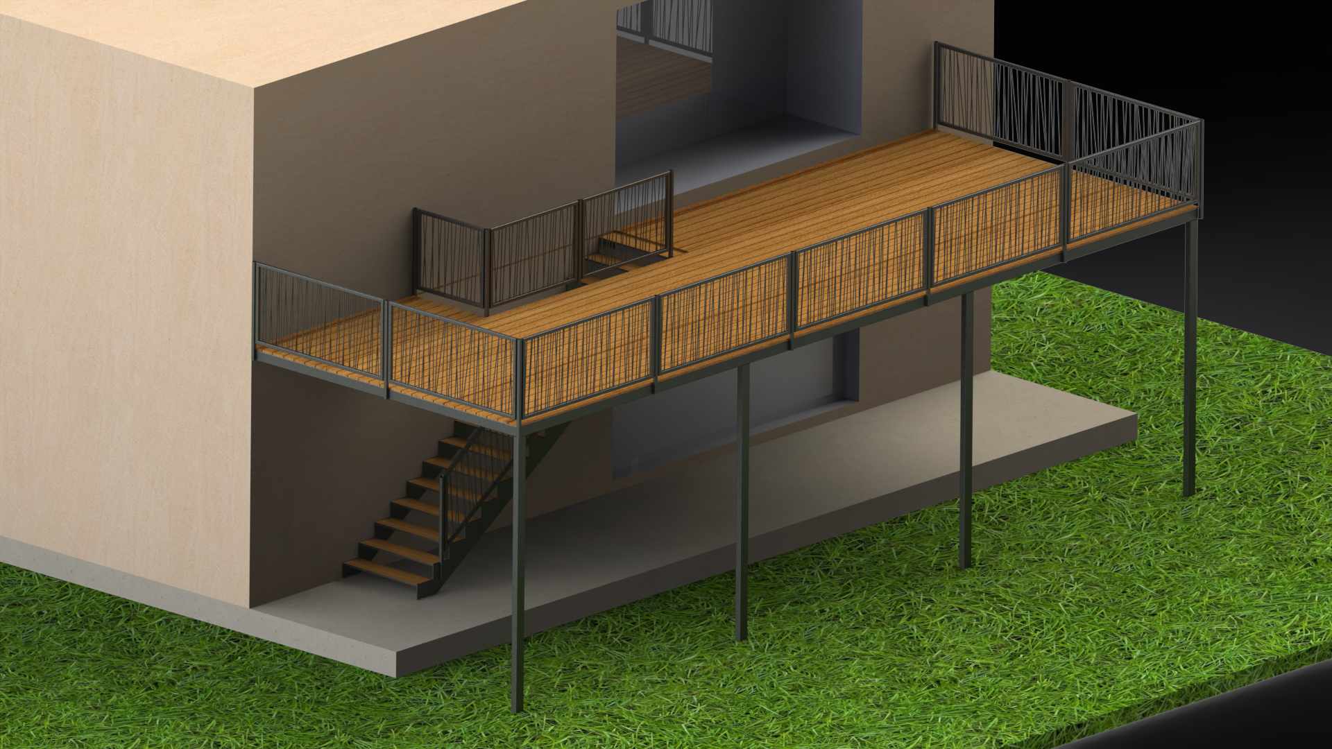 Je voudrais recevoir un devis pour une terasse en de 3m de hauteur avec poutres en bois ou métalliques taille de12m de longueure sur 4m50 de largeur.