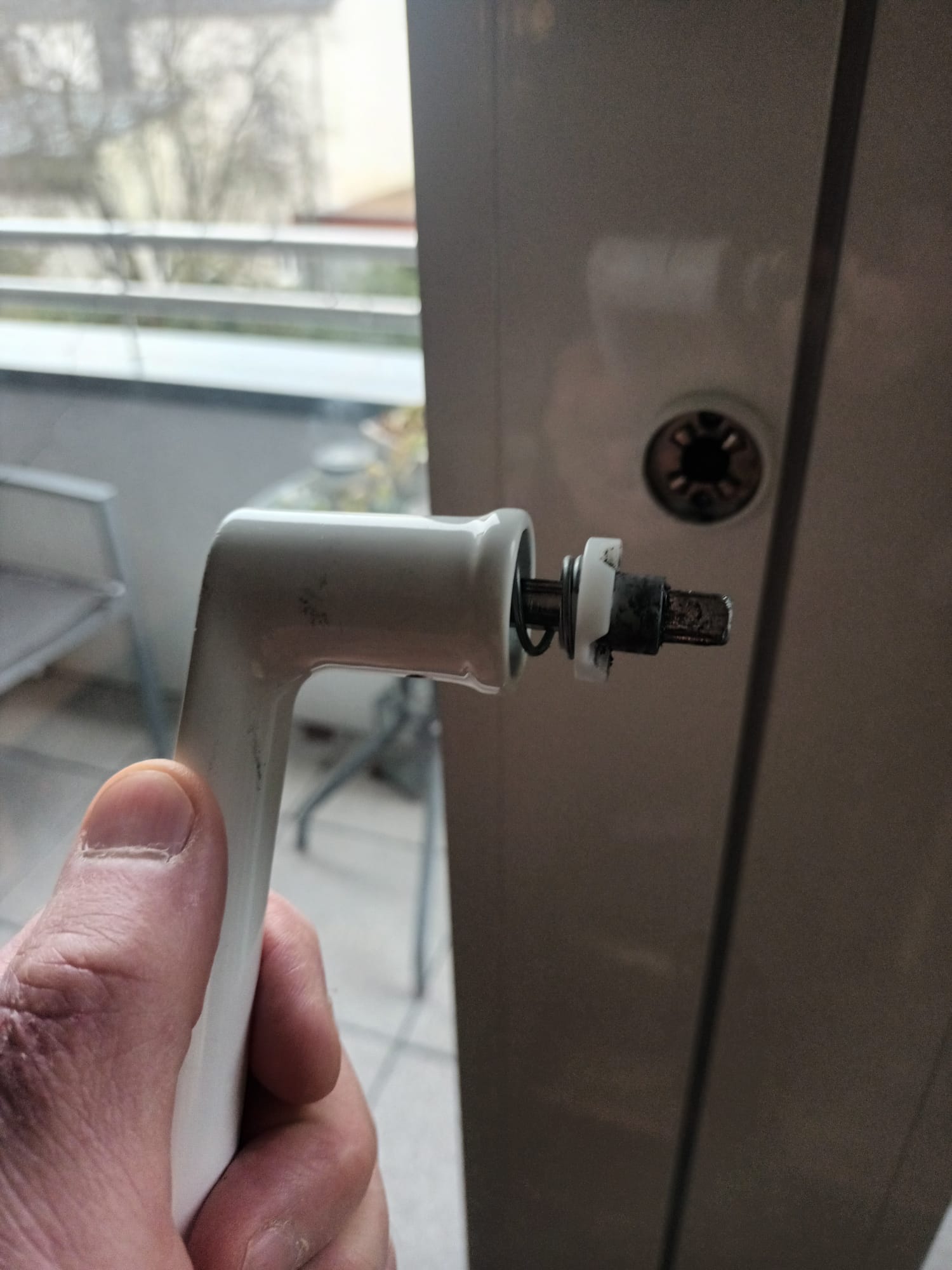 Reparatur einer Fenstertür, bei der der Griff sich gelöst hat (siehe Fotos)