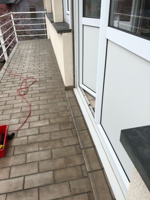 Réfection d‘un balcon (pose d‘une moquette de pierre sur carrelage existant)