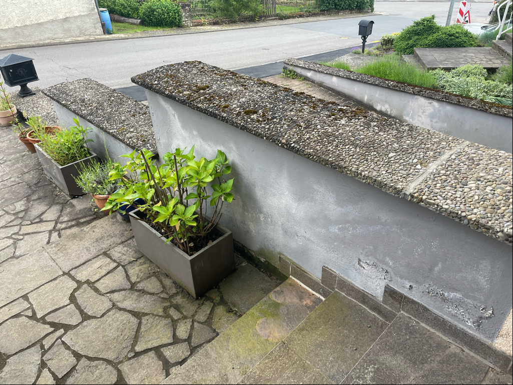 Plus tard, nous aimerions également faire peindre les boiseries de notre abri d'auto et les cadres de fenêtres, mais cette année, nous voulons commencer par les murs extérieurs gris et peut-être pourrons-nous faire un plan avec le peintre pour savoir quand l'autre (à l'extérieur) certaines parties de la maison seront peintes. J'habite à Gostingen.